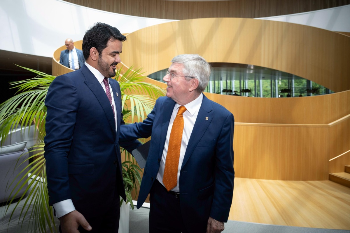 QOC President H E Sheikh Joaan bin Hamad Al Thani with IOC President Dr. Thomas Bach.