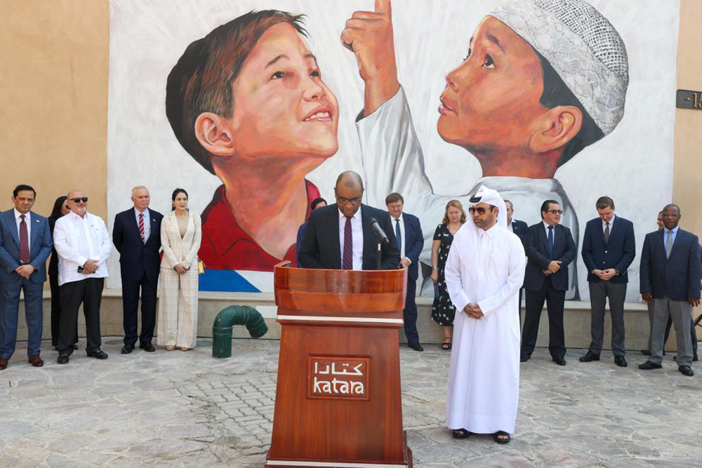 The mural was inaugurated in the presence of General Manager of the Cultural Village Foundation Katara HE Dr. Khalid bin Ibrahim Al-Sulaiti and Cuban Ambassador to Qatar HE Oscar Leon Jones Eliza.