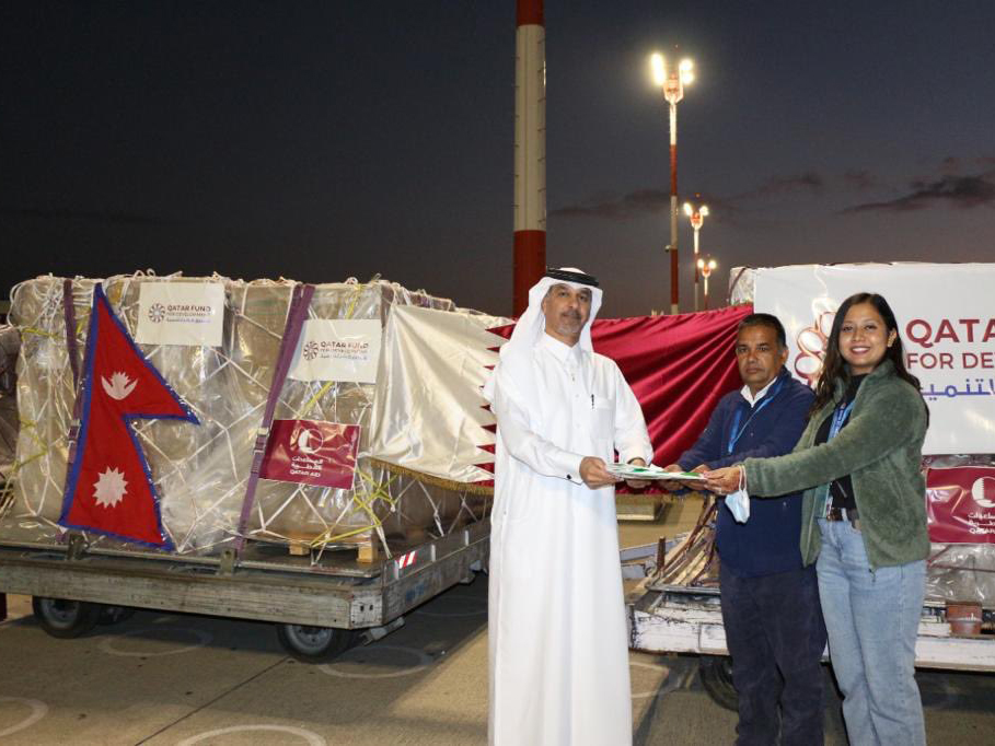 The cargo and its documents were handed over by First Secretary at Qatar Embassy in Kathmandu Khalid Abdualla Al Ibrahim to the representatives of Nepal Ministry of Health and Population Om Prasad Upadhyaya, Immunization Officer, and Samikshya Thapa, Pharmacy Officer from Department of Health Service, QFFD said in a statement.