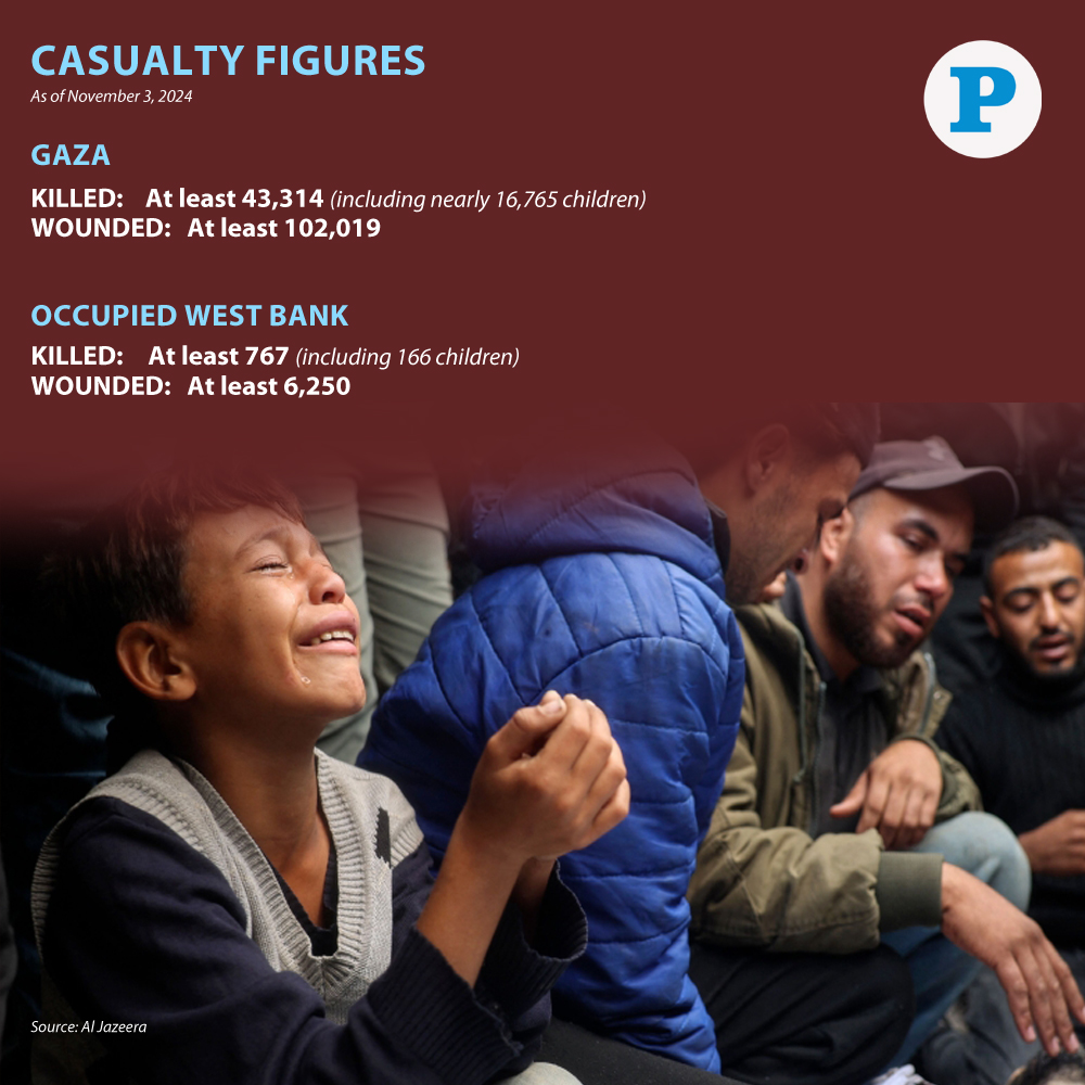 Gaza: The toll of casualties due to the ongoing Israeli offensive in the Gaza Strip since October 7, 2023 has risen to 43,314 fatalities and 102,019 injuries, while still thousands of victims are under rubble and on the streets, with rescue personnel being unable to reach them.