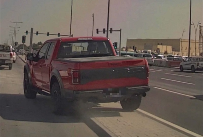 Traffic Department has seized a Ford Raptor and its driver for driving the vehicle on the road divider.
