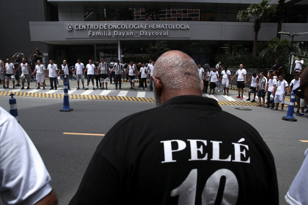 On Sunday, his fans stood mostly in silence outside the clinic in the Morumbi neighborhood of western Sao Paulo, holding a banner bearing an image of a youthful Pele and marked "Torcida Joven" ("Young Fans").