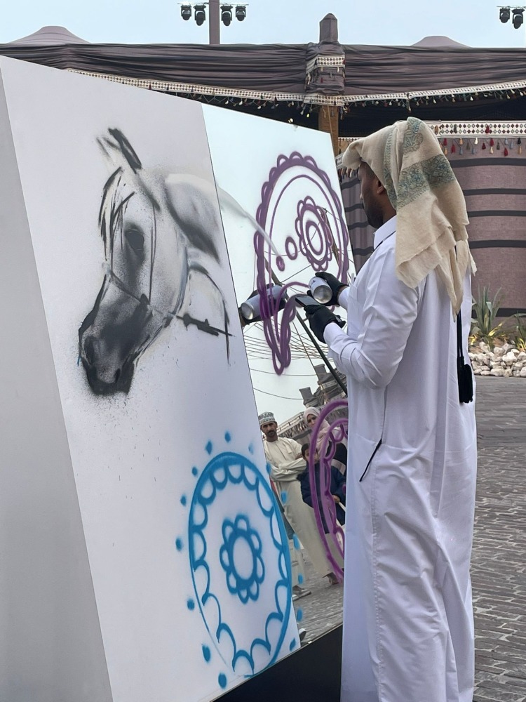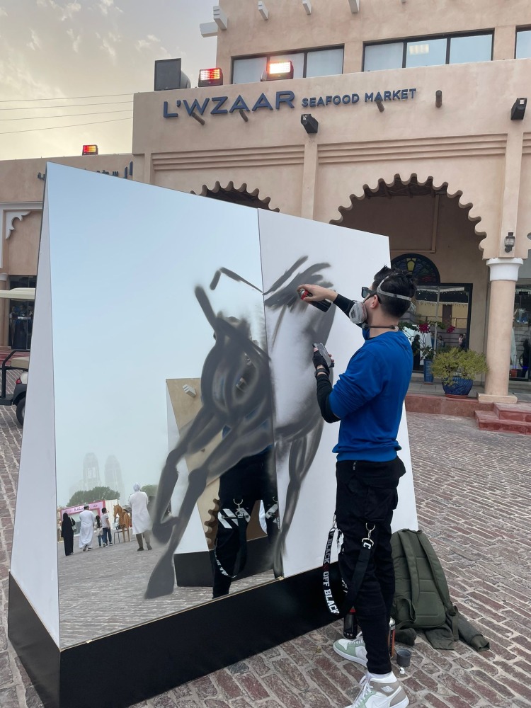 Dfs, who traveled all the way from Algeria to Qatar, used black spray to create a reflection of the horse. According to him, the event serves as a platform for artists like himself to exhibit their work.