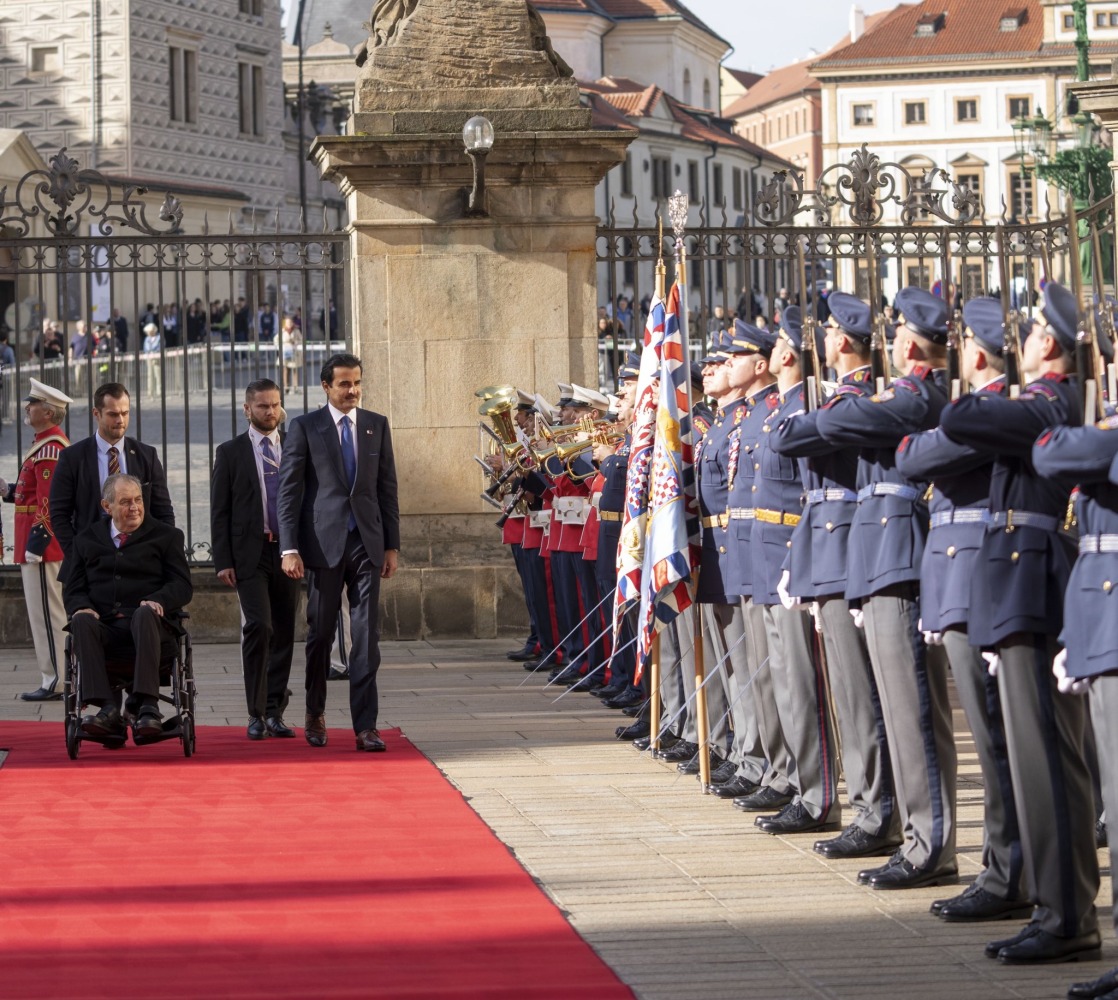Doha: The Amir H H Sheikh Tamim bin Hamad Al Thani received an official reception at the presidential residence in Prague Castle, on the occasion of His Highness' state visit to the friendly Czech Republic.