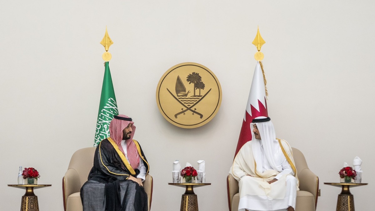 Doha, Qatar: HH the Amir Sheikh Tamim bin Hamad Al-Thani led the well-wishers to welcome his brother HRH Crown Prince and Prime Minister of the sisterly Kingdom of Saudi Arabia Prince Mohammed bin Salman bin Abdulaziz Al Saud upon his arrival at Hamad International Airport (HIA) Amiri Terminal to preside over the delegation of the Kingdom of Saudi Arabia to the 44th Summit of the Gulf Cooperation Council (GCC) Supreme Council, which Doha hosts Tuesday.