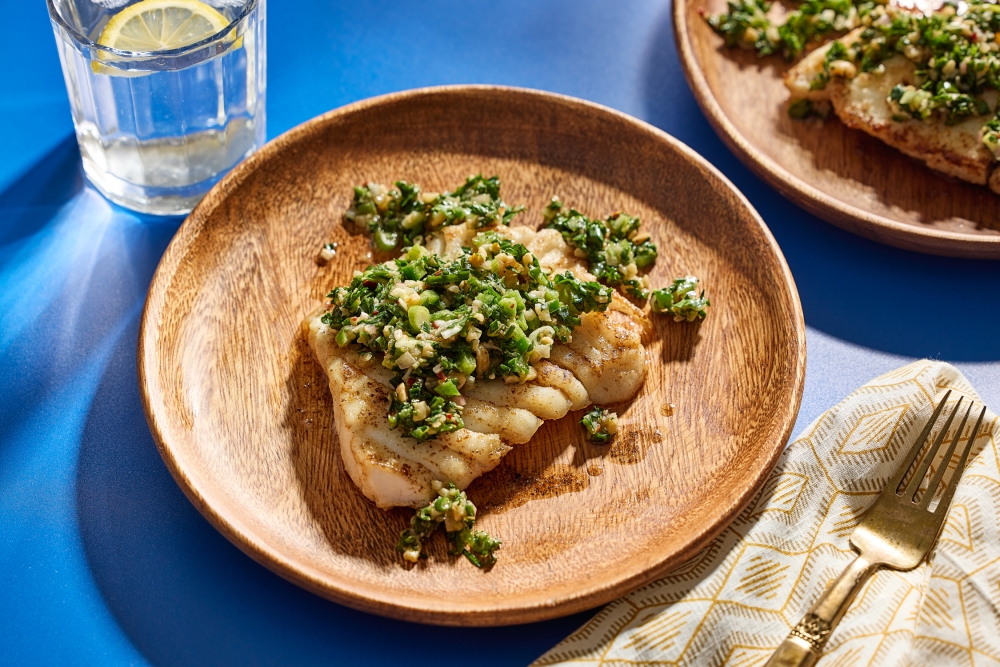 A bold salsa - packed with herbs, garlic, hot peppers and peanuts - makes a thrilling topping for pan-seared grouper (or any firm white fish you like). You’ll end up with more salsa than you need for this recipe. It can also be used to dress up sandwiches, burgers, potatoes, eggs, roast chicken and more. One taste, and you’ll understand why chef Eric Adjepong made it a signature condiment on the menu at East End Bistro in Accra, Ghana, and featured it in his debut cookbook, "Ghana to the World.”