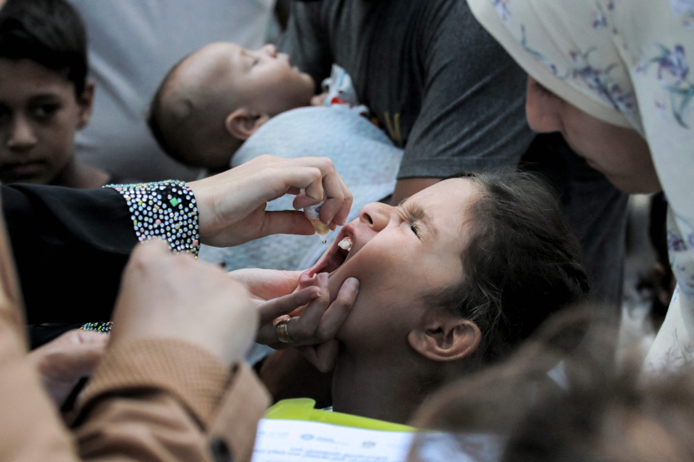 A child receives a vaccination for polio in Khan Yunis in the southern Gaza Strip on September 5, 2024. (Photo by Bashar Taleb / AFP)