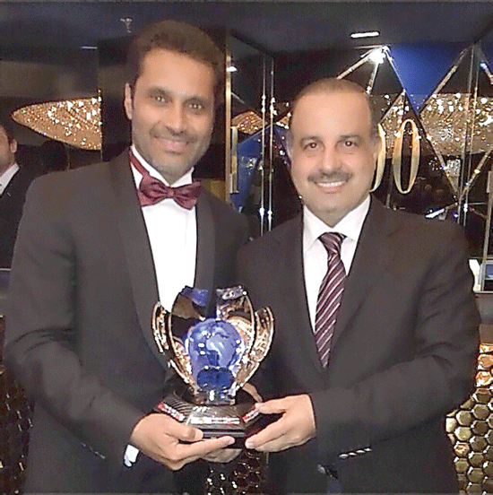 Qatar’s Nasser Saleh Al Attiyah (left), winner of both the FIA World Cup for Cross Country Rallies and the WRC2 trophies, is seen with his trophy along with Nasser Khalifa bin Al Attiyah, President of Qatar Motor and Motorcycle Federation at the famed Lido theatre in Paris on Friday night. Nasser, was one of the several winners at this year’s FIA Championships honoured at the glittering prize-giving ceremony. Formula One World Champion, Lewis Hamilton and FIA World Rally Champion, Sébastien Ogier, were the other stars honoured along with several others winners. Right: Nasser and his co-driver Mathieu Baumel with their trophies.