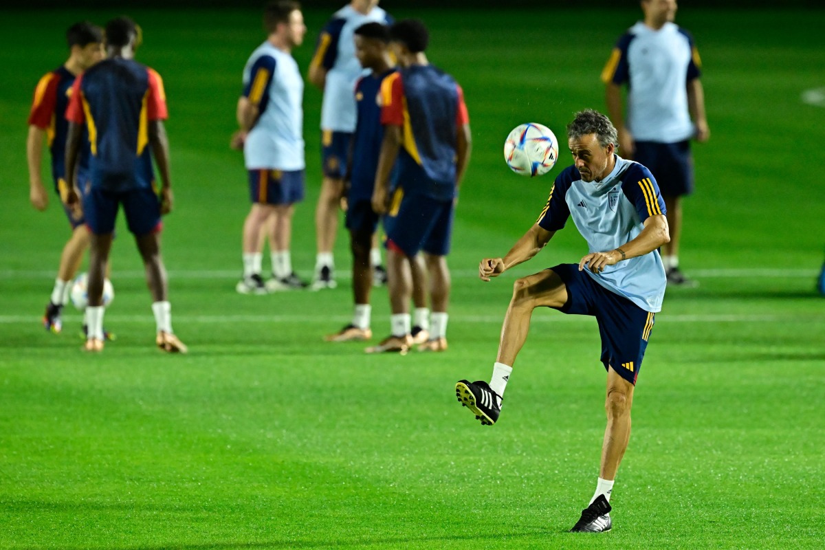 Spain’s coach Luis Enrique during a training session at the Qatar University. AFP