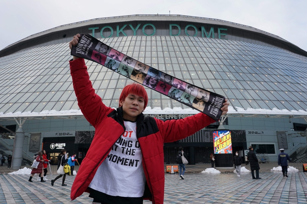 Excited fans queued in the cold from morning to buy merchandise at Tokyo Dome before the four shows, part of the megastar's global Eras Tour -- the first billion-dollar-tour ever.