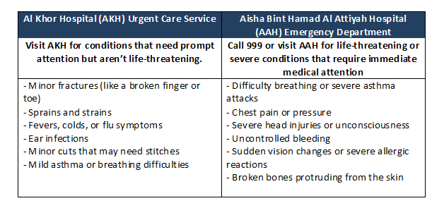 “With the relocation of emergency services to Aisha Bint Hamad Al Attiyah Hospital, Al Khor Hospital will close its Emergency Department. However, Al Khor Hospital will continue to offer urgent care services for walk-in patients with non-critical conditions.”