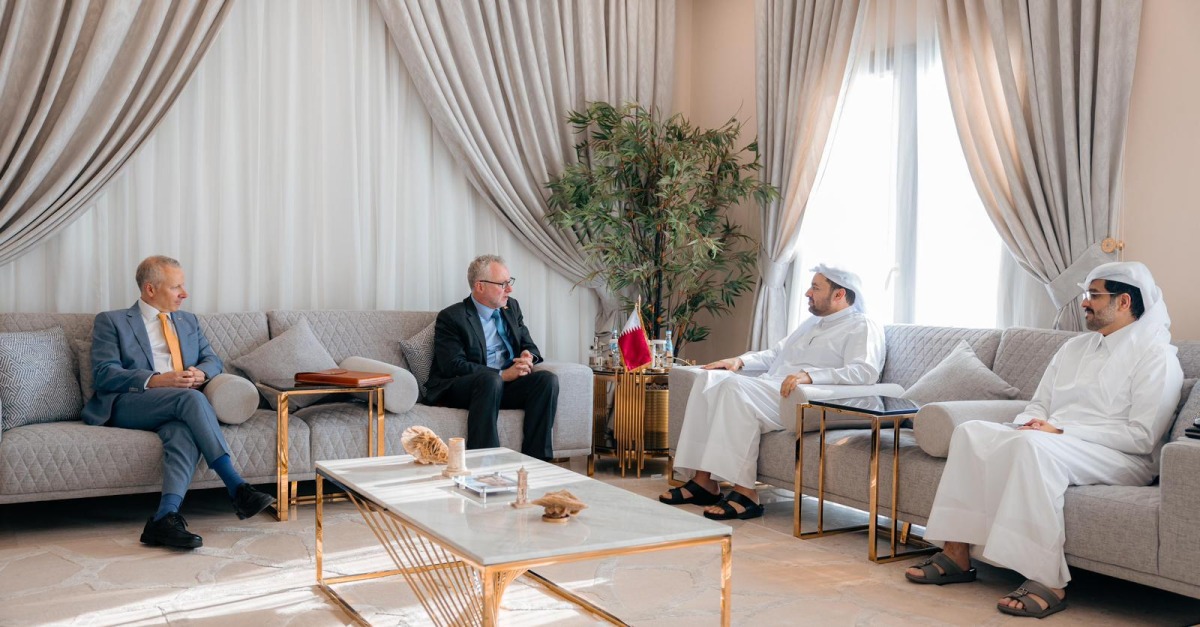 Doha, Qatar: Minister of State at the Ministry of Foreign Affairs, HE Dr. Mohammed bin Abdulaziz bin Saleh Al Khulaifi met on Tuesday with Senior Advisor to the Prime Minister of Canada on Foreign, Defense, and Security Policy HE Scott Gilmore, who is visiting the country.