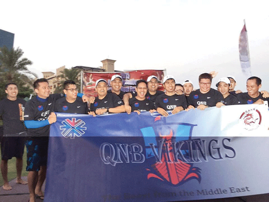 QNB paddlers celebrate their 1st runner-up place in the Corporate Platinum Division of the 1st Qatar International Dragon Boat Festival at the Grand Hyatt Hotel. More than 400 paddlers including one team from Abu Dhabi participated. QNB topped their elimination assignments in 200m sprint where 10 corporate teams battled it out to qualify for the championship round.