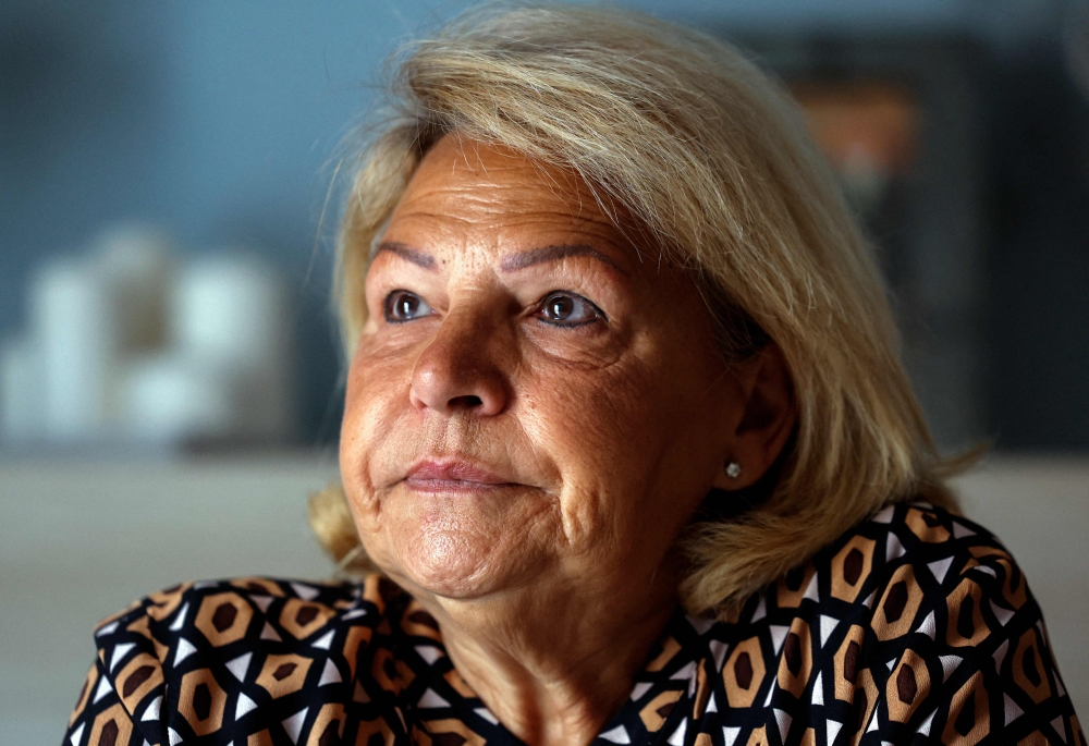 Maria de los Angeles Pedraza Portero, whose daughter Miryam died in a train at Atocha station in the 11M attacks, is pictured during an AFP interview in Valdemoro, south of Madrid, on March 4, 2024. Photo by OSCAR DEL POZO / AFP