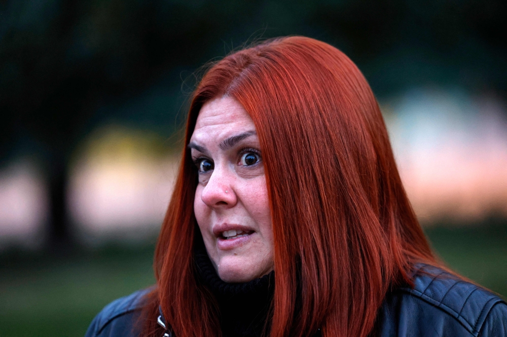 Rut Jezabel Garcia, 45, --injured by the explosion of a bomb on the train she was traveling in, during the March 11, 2004 deadly attacks in Madrid-- holds an interview with AFP in San Fernando de Henares on March 6, 2024. Photo by OSCAR DEL POZO / AFP