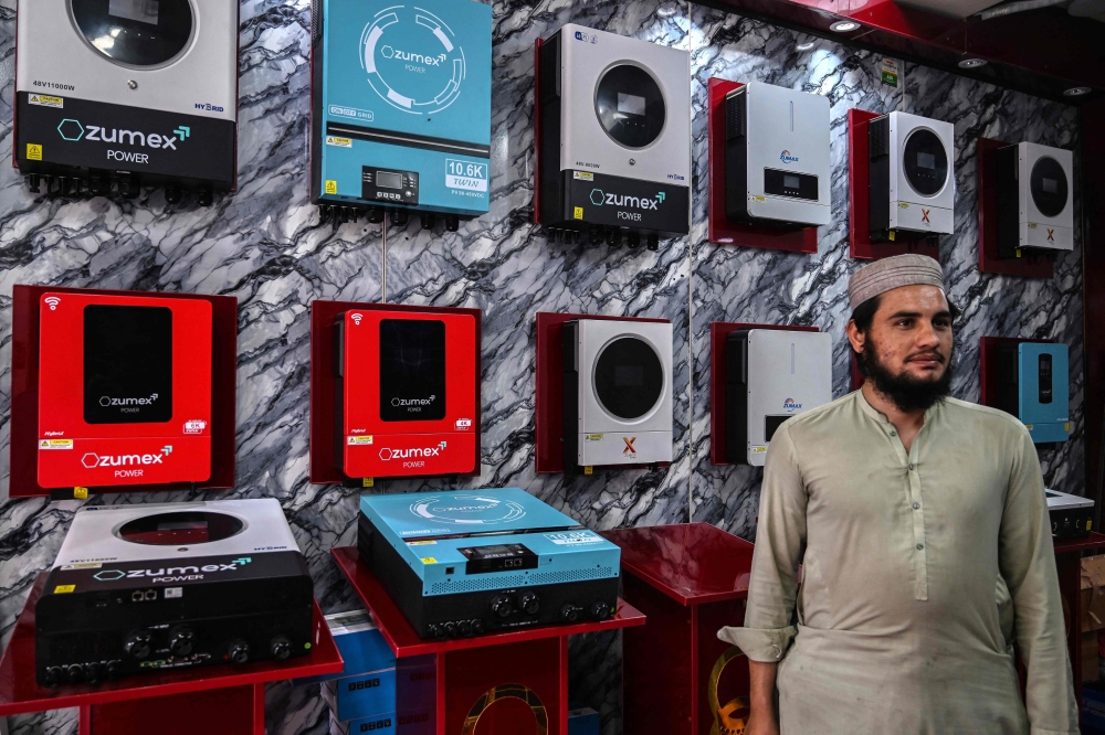A customer shopping for solar inverters at an electrical appliance store in Rawalpindi. (Photo by Farooq Naeem / AFP)