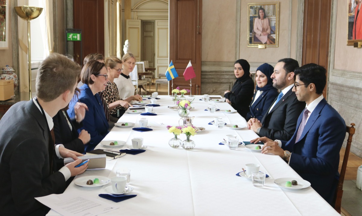 The Swedish Minister of Foreign Affairs praised the State of Qatar's mediation efforts to resolve several regional and international disputes, primarily the joint mediation efforts in Gaza.