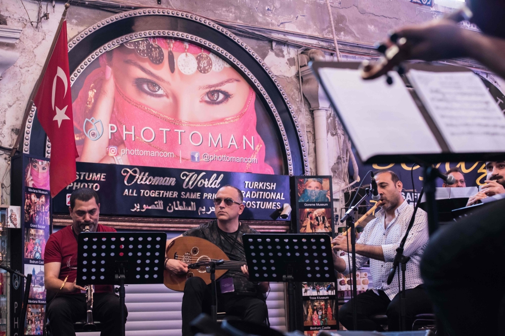 As the evening light streams through the upper arch windows, it is music that resonates through the bazaar; oriental wind instruments like the Turkish ney and Armenian duduk, the lute-like oud and the Balkan accordion.