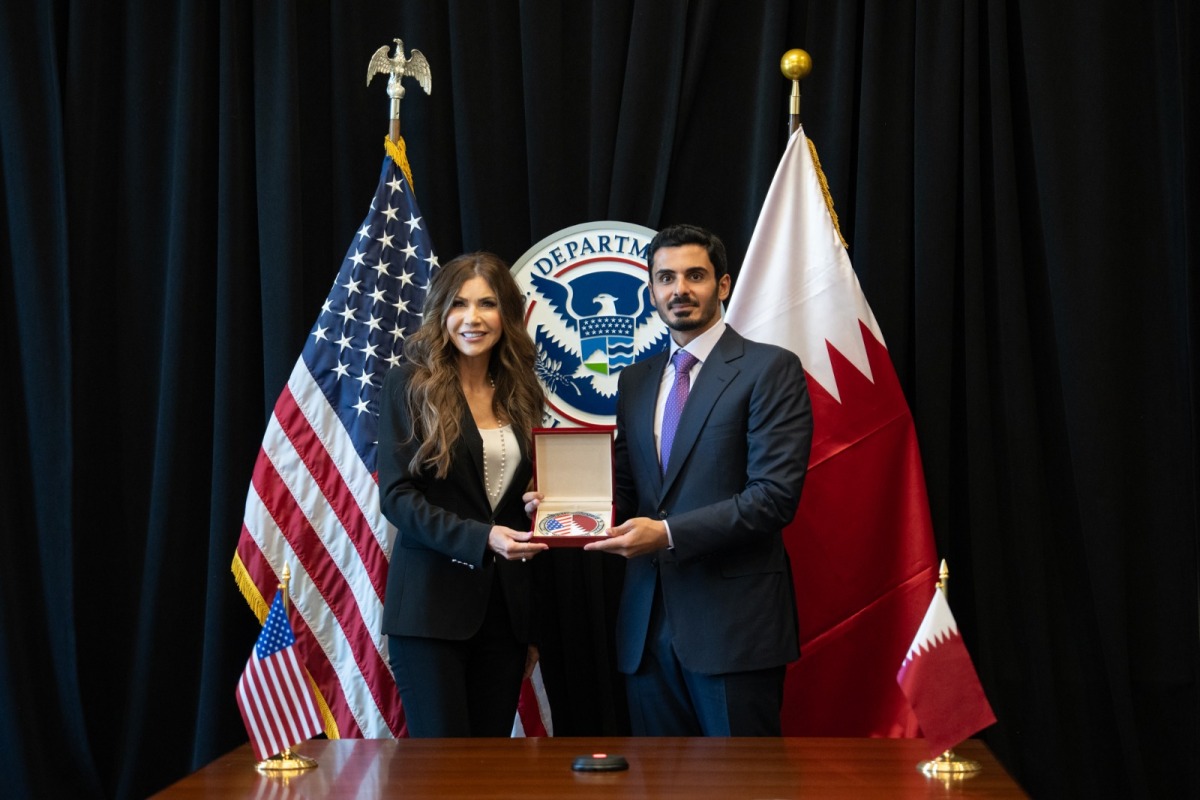 Washington: Minister of Interior and Commander of the Internal Security Force (Lekhwiya) HE Sheikh Khalifa bin Hamad bin Khalifa Al-Thani met with Secretary of the Department of Homeland Security of the United States of America HE Kristi Noem, during His Excellency's official visit to Washington DC
