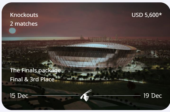 The packages vary from four matches (13 nights) for early group stages, three matches and two matches (4 nights).