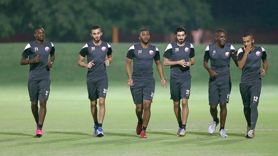 Qatari players during a training session at Aspire Academy ahead of their friendly match against Turkey on Friday. The game is aimed to give Al Anabi match practice before their FIFA World Cup 2018 and Asian Cup 2019 joint qualifying match against Bhutan on November 17 in Doha.