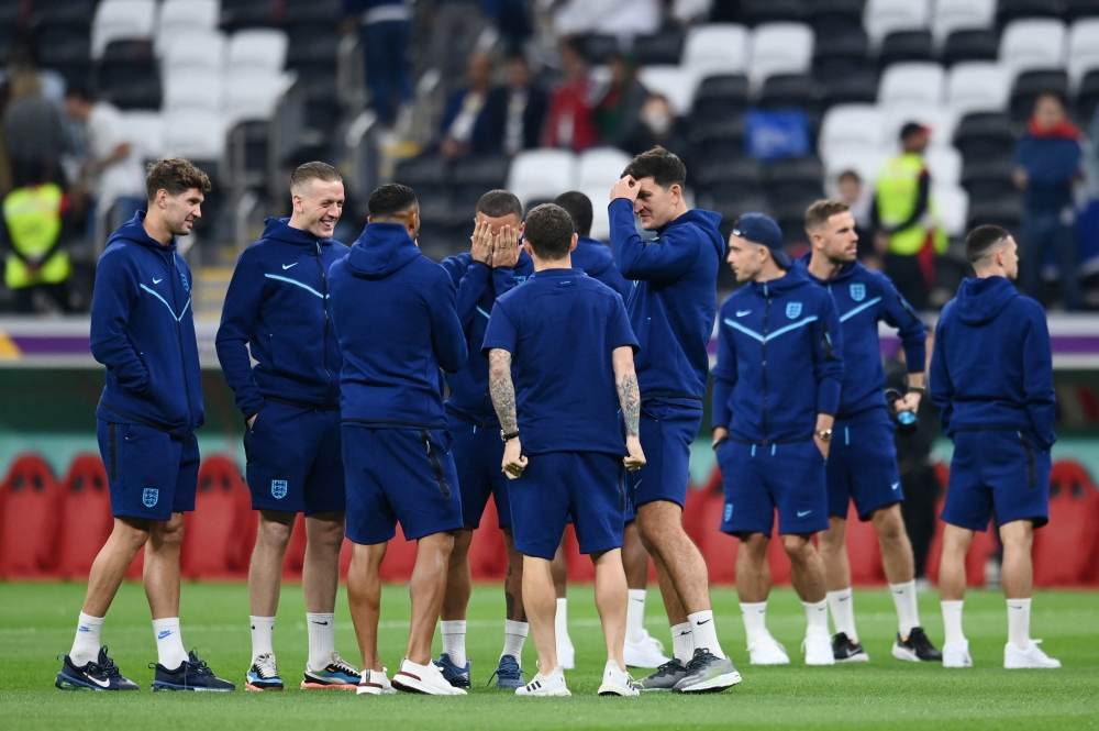 England's Kyle Walker with teammates on the pitch before the FIFA World Cup Qatar 2022 quarter final match against France at the Al Bayt Stadium, Al Khor, Qatar, on December 10, 2022. REUTERS/Annegret Hilse