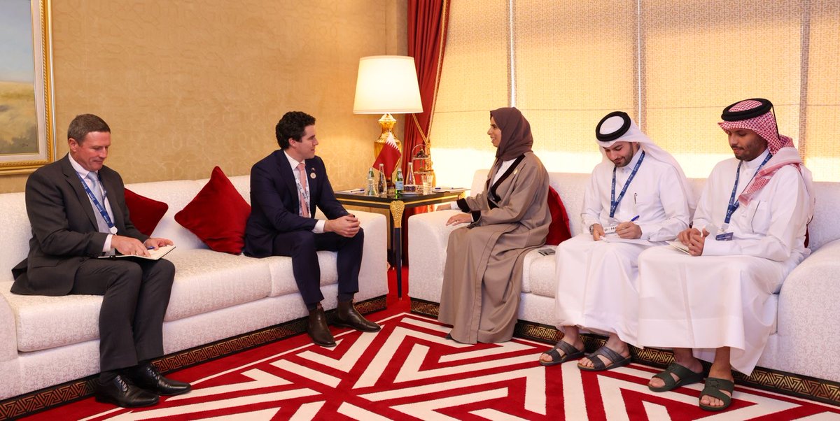 Doha, Qatar: Minister of State for International Cooperation at the Ministry of Foreign Affairs HE Lolwah bint Rashid Al Khater met on Sunday with the Minister of International Development in Canada HE Ahmed Hussen, Assistant Minister for Foreign Affairs of Australia HE Tim Watts; Vice Minister for Economic Affairs and International Cooperation of the Ministry of Foreign Affairs of the Dominican Republic HE Hugo Rivera Fernandez; the Under-Secretary of State for Foreign and Security Policy of the Republic of Finland HE Outi Holopainen; Director General of the Ministry of Foreign Affairs of the Kingdom of Sweden HE Dag Juhlin-Dannfelt; Commissioner-General of the United Nations Relief and Works Agency for Palestine Refugees in the Near East (UNRWA) HE Philippe Lazzarini, and the President of Gender Equality at Bill and Melinda Gates Foundation HE Anita Zaidi, on the sidelines of Doha Forum 2023.