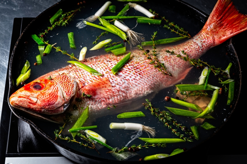 1 gutted, scaled and cleaned whole red snapper (1 pound)