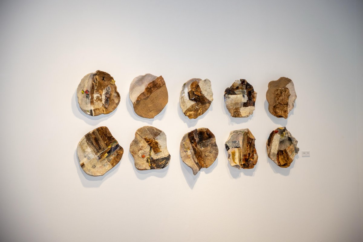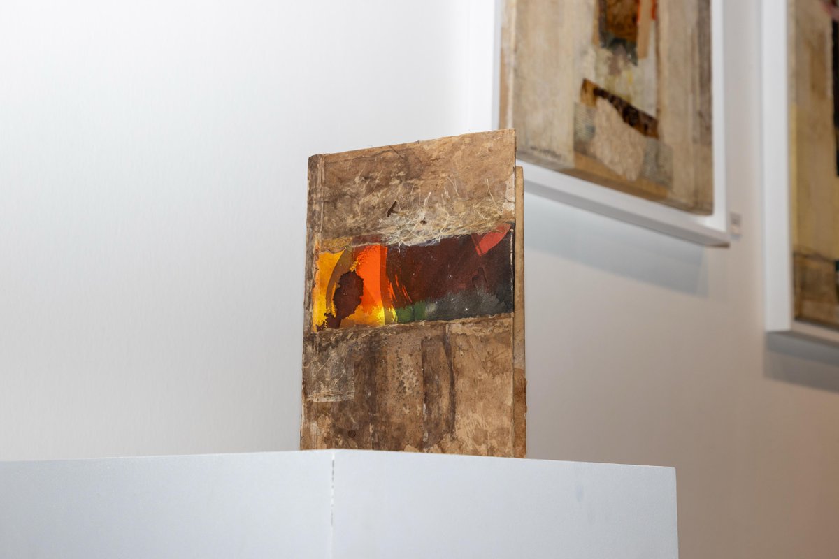 The exhibitions pieces range from paintings to pottery plates, cubes, and the artist's book, employing a visual composition that integrates contemporary techniques addressing both emotion and memory.