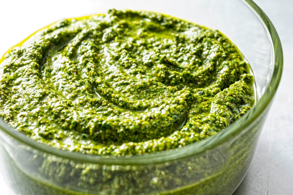 The recipe is a time-saving twofer. Use half the pesto now, and freeze the rest for a quick and easy meal later.