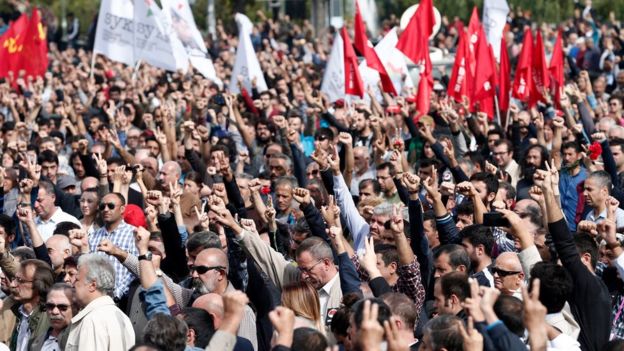 Thousands of demonstrators filled Sihhiye Square in central Ankara, close to the site of the blasts, with some shouting anti-government slogans.