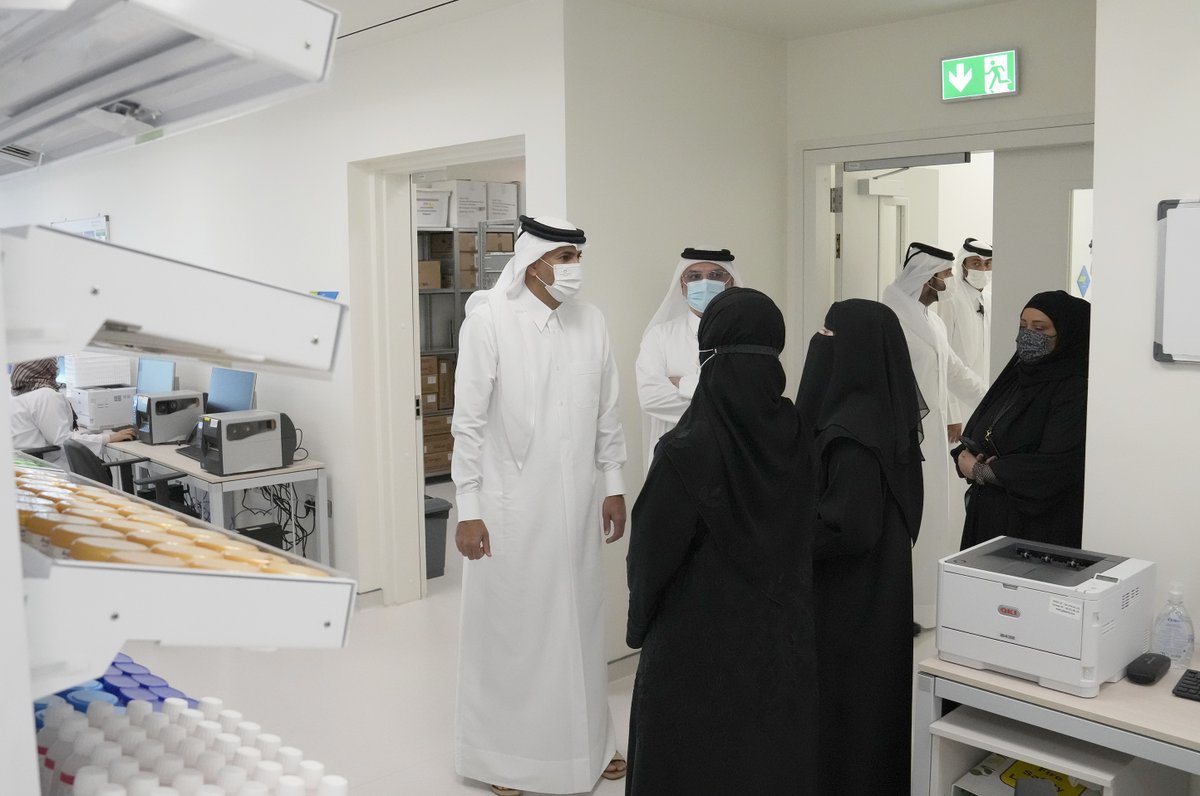HE Prime Minister and Minister of Interior was accompanied by Minister of Public Health HE Dr. Hanan Mohamed Al Kuwari and a number of senior officials in the health sector.