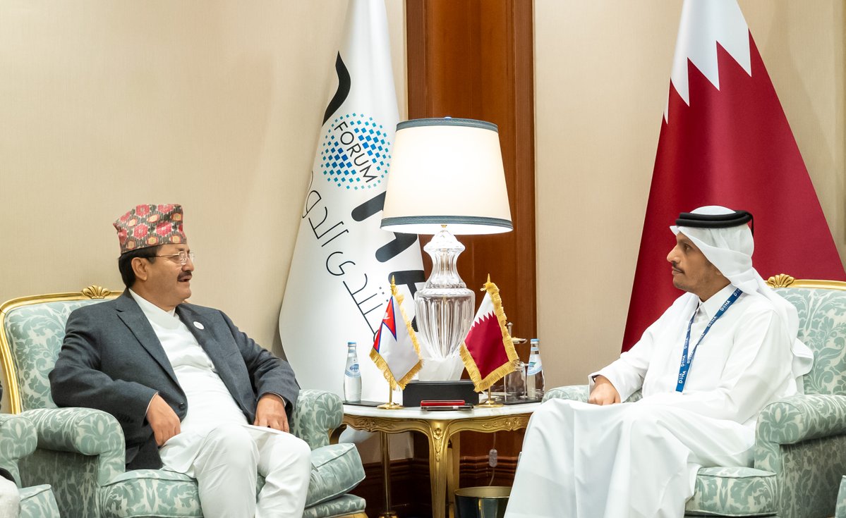 Doha, Qatar: Prime Minister and Minister of Foreign Affairs HE Sheikh Mohammed bin Abdulrahman bin Jassim Al-Thani met separately on Monday with Minister of Foreign Affairs of Nepal HE Narayan Prakash Saud and Minister of Foreign Affairs and International Cooperation of the Republic of Rwanda HE Dr. Vincent Biruta, on the sidelines of the Doha Forum 2023.