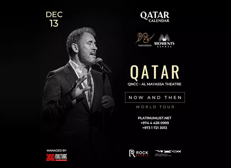 Kadim Al Sahir, popular known as the 'Caesar of Arabic Music', will grace the QNCC this weekend as part of his "Now and Then World Tour". Known for iconic hits such as "Qoulee Ouhibbouka," "Mali Khelek," "Hal Endak Shak," and "Akrahouha," he is set to deliver an unforgettable performance celebrating his timeless musical legacy.