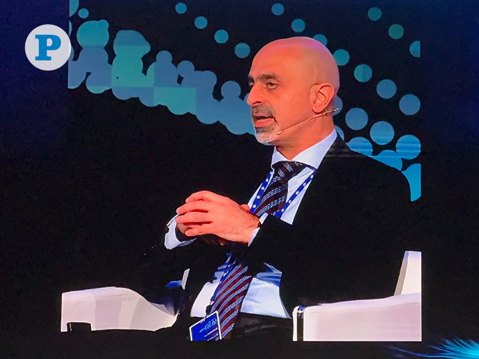 Rabih Saad speaking during the first session of Al Jazeera AI in Media conference on Saturday January 11, 2025. Photo by Oussama Abbassi / The Peninsula