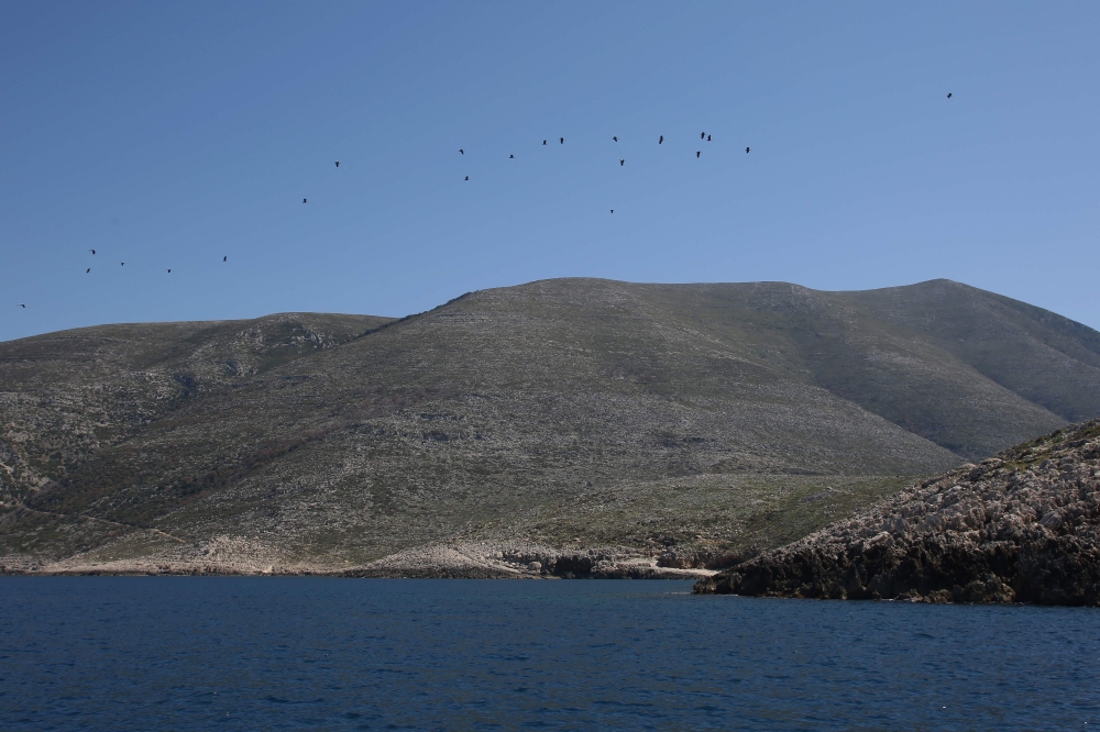 This photograph taken on March 24, 2023, shows the coast of the Karaburun peninsula, the habitat used by Mediterranean monk seals (Monachus monachus), some 17.5 nautical miles from the coast of Vlore, southern Albania.