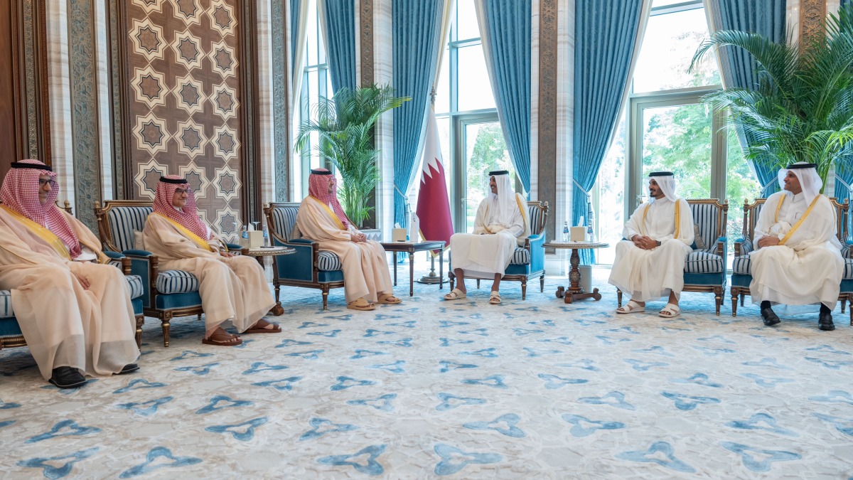 Doha, Qatar: The Amir His Highness Sheikh Tamim bin Hamad Al Thani received in his office at Lusail Palace this morning His Royal Highness Prince Abdulaziz bin Saud bin Nayef bin Abdulaziz Al Saud, Minister of Interior of the Kingdom of Saudi Arabia, and the accompanying delegation, on the occasion of his visit to the country.