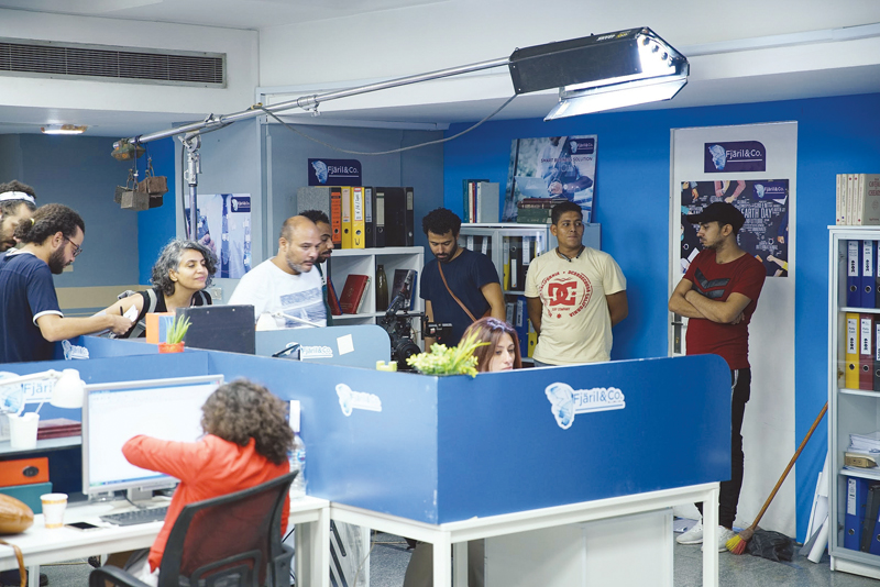 Some of the scenes in the film take place in an office, requiring the setting and props for these visuals to be designed and built from the ground up.