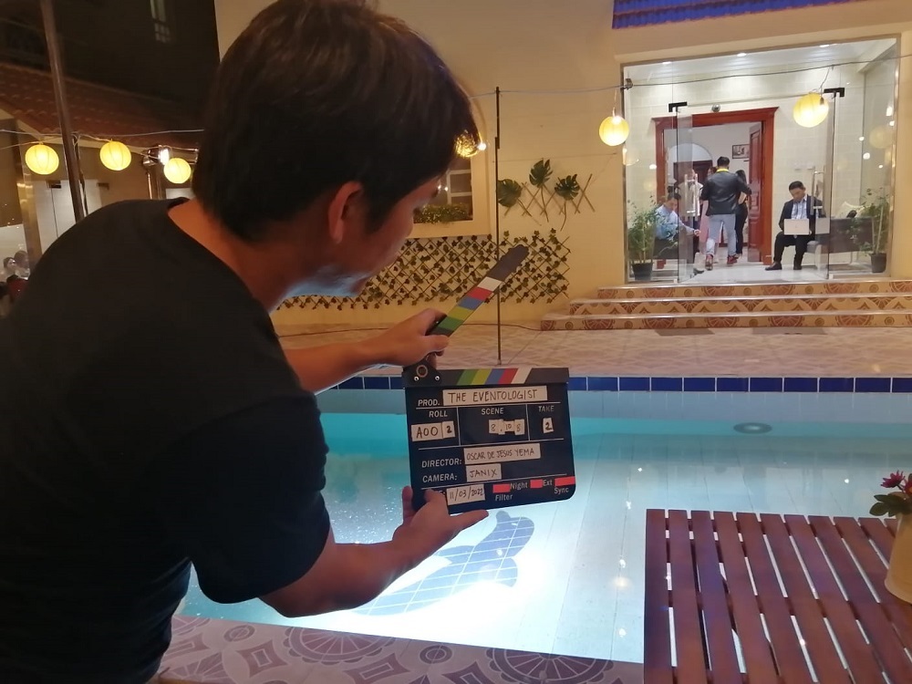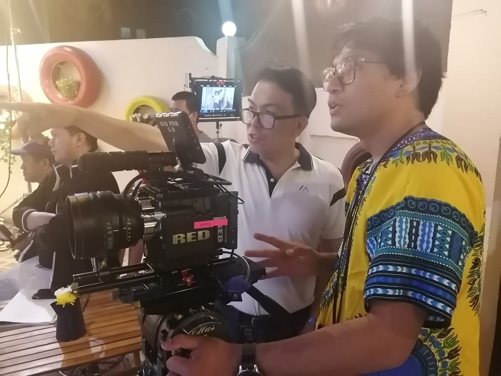The writer-director, Oscar de Jesus Yema (left), in action during filming of "The Eventologist".