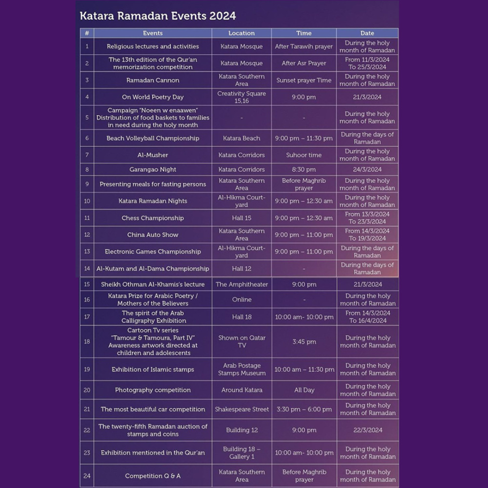 Katara Cultural Village lights up with the glow of Ramadan, presenting a spectrum of activities that range from religious lectures and food basket distributions to volleyball competitions and enchanting Ramadan nights.