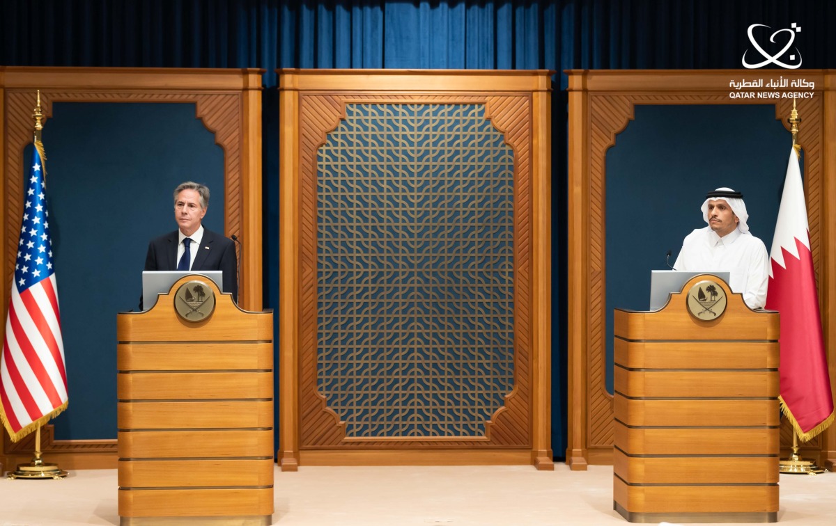 During a press conference this evening with HE Secretary of State of the United States of America Antony Blinken, His Excellency said that the State of Qatar's priorities in its diplomatic actions are to seek an immediate ceasefire, protect civilians, release prisoners and work to limit the expansion of violence and the cycle of conflict in the region, which will have serious consequences if it expands.