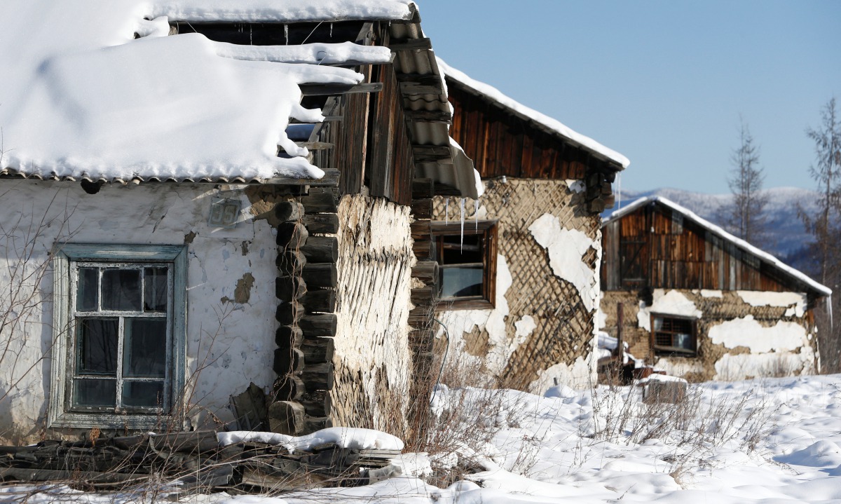 Abandoned houses are seen at a decommissioned placer mine in the settlement of Nelkan, Republic of Sakha (Yakutia), Russia, March 22, 2017. REUTERS/Sergei Karpukhin