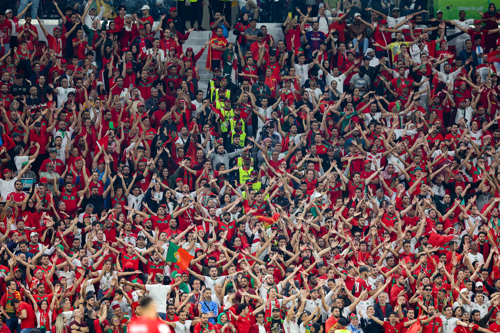 Morocco fans cheer during the quarter-final match against Portugal on December 10. Pic: Ayman Kamel