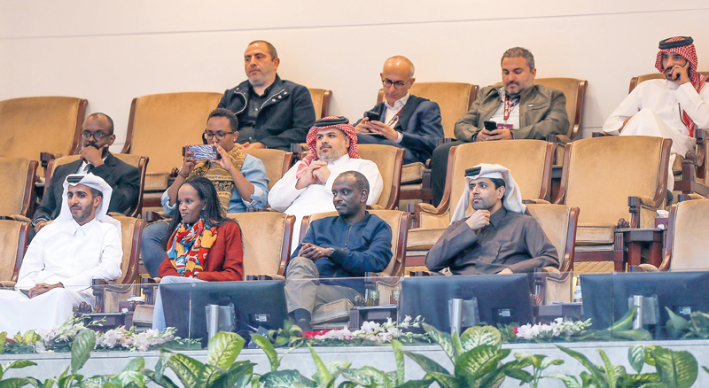 Qatar Tennis Federation President Nasser Al Khelaifi, along with guests, watching the action during the quarter-finals of the Qatar Total Open, in Doha, yesterday.