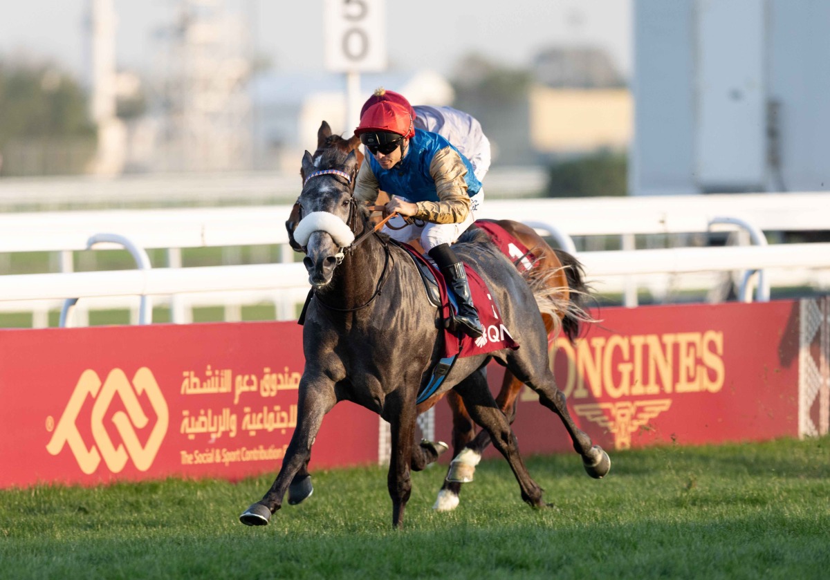 Wathnan Racing’s Chdia claimed the Qatar International Cup, taking the Purebred Arabian (Class 1 Gr1) under Soumillon for trainer De Mieulle, while Make Me King triumphed in the Irish Thoroughbred Marketing Cup, dominating the 1600m Thoroughbred (Listed Qa Gr2-Class 1) International race. The six-year-old grey gelding is trained by Hamad Al Jehani and was ridden by Pierre-Charles Boudot.