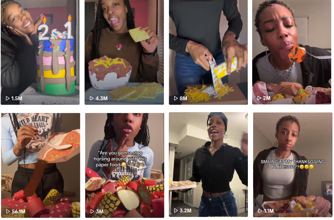 She has heard from viewers that her recipes, which she gets from her favorite restaurants, fan suggestions, her mom and TikTok, instill a sense of childlike wonder and nostalgia for her nearly 1 million followers. Some kids have tried their hand at making paper food after watching her content.