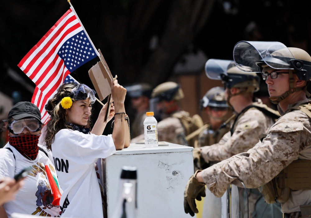 "Go to therapy Donald. Authoritarianism is not self-care," read one placard in front of the federal building in Los Angeles, the focus of more than a week of protests over a Trump-ordered crackdown on immigration.