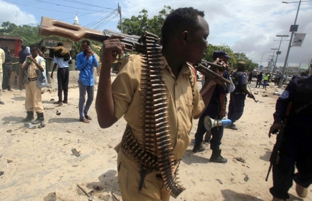 A Somali policeman walks at the scene of an explosion outside the headquarters of Somalia's Criminal Investigation Department (CID) in the capital Mogadishu, July 31, 2016. REUTERS/Ismail Taxta/File Photo.