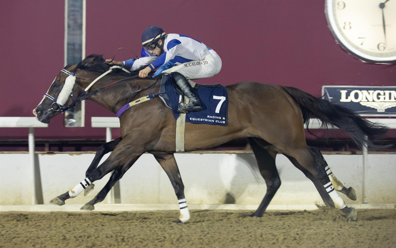 In the Purebred Arabian Conditions (CLASS 2), Arguya, ridden by Casamento, reigned supreme claiming a 2¾-length win in the 1400m Class 2 run. It was the second title of the night for Injaaz Stud, winning QR42,750.