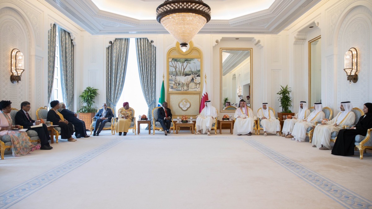 At the outset of the session, HH the Amir welcomed HE President Cyril Ramaphosa and his accompanying delegation, noting the visit comes in light of the shared keenness of His Highness and HE the President to consolidate bilateral cooperation between the two countries in various sectors. HH the Amir also expressed his satisfaction with the current level of relations between the two countries, which paves the way for further cooperation and bilateral partnership in the future.